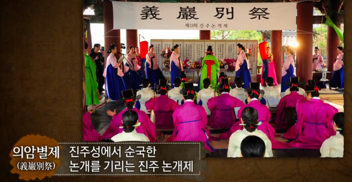 또한 해마다 진주성에는 논개를 기리는 진주 논개제 의암별제가 열린다.