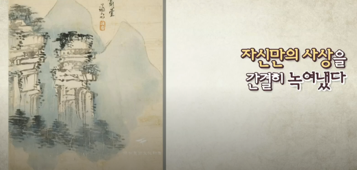 `진경 산수화의 대가 겸재 정선이라고 불리는데 진경 산수화란 본바탕을 가장 잘 나타낸 참다운 경치라라는 뜻으로 자신의 본 것을 느낌 그대로 잘 나타낸 산수화를 말한다. 실제 풍경을 본 뒤에 그림을 그릴 때 강조하고 싶은 부분에 집중하면서 과감하게 삭제할 부분은 삭제하면서 그림 속에 자신의 철학, 사상등 자연이 갖고 있는 본질적 아름다움을 녹여낸 감정을 그린다.