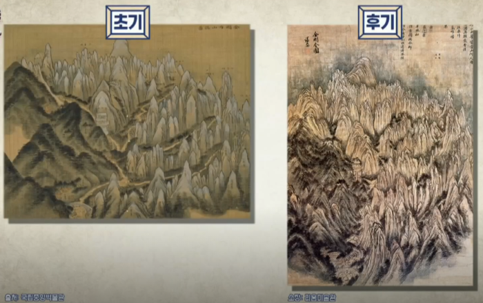 금강제색도 초기와 후기 비교 오른쪽은 세 번째 금강산 여행때 그린 <금강내산도>이다.