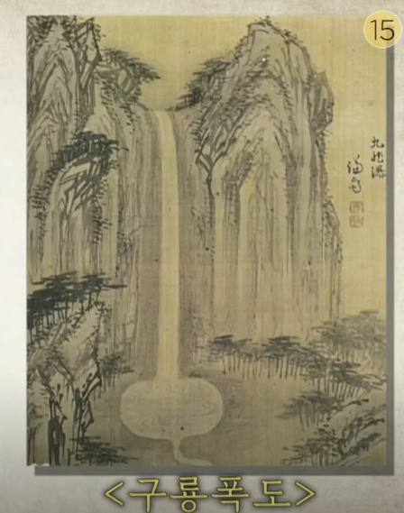 `진경 산수화의 대가 겸재 정선이라고 불리는데 진경 산수화란 본바탕을 가장 잘 나타낸 참다운 경치라라는 뜻으로 자신의 본 것을 느낌 그대로 잘 나타낸 산수화를 말한다. 실제 풍경을 본 뒤에 그림을 그릴 때 강조하고 싶은 부분에 집중하면서 과감하게 삭제할 부분은 삭제하면서 그림 속에 자신의 철학, 사상등 자연이 갖고 있는 본질적 아름다움을 녹여낸 감정을 그린다.