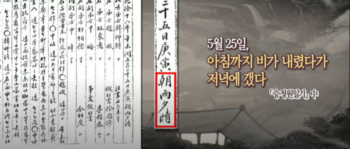 승정원 일기에 5월 25일 아침에 비가 내렸다가 갰다는 기록이 확인된다.