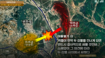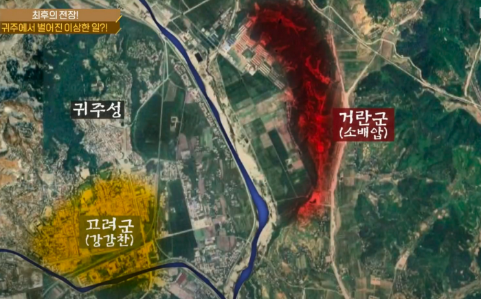 실제 전투에서 거란군이 구릉지대에서 강을 하나 건너오고 고려군도 물줄기 하나를 건너 드넓은 평야 지대에서 전투를 벌였다. 또한 남쪽에서는 지원군까지 오고 있었다. 30만 병력의 격돌, 양쪽 군사들이 대치를 하며 승패를 결정짓지 못하고 있었다. 그러나 귀주대첩에서 가장 이상한 이야기가 펼쳐진다. 거란군의 뒤편에서 김종현 기마 부대 1만명이 나타난 것이다. 거란군은 김종현 부대를 전혀 인지하지 못하고 있었던 것 같다. 당시 남풍이 불어오고 있었고 기병과 활을 사용하는 거란군에게 맞바람이 불어와 불리한 상황에 쳐했던 것이다.