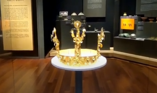 직경 14cm 교동금관은 도굴군에게 압수한 금관으로 사이즈가 작고 단순한 형태로 초기 금관의 형태로 나이가 어린 사람의 것으로 추정하고 있다. 우리나라 금관 형태는 머리띠 위에 나뭇가지 같은 형태를 만들었다. 시대가 흐를수록 이 잔가지 수가 증가한다. 신라 금관은 총 6개가 발견되었는데 그 중에서 가장 오래된 금관이다.