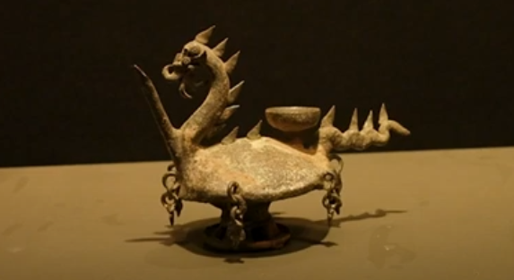 신라무덤에서는 오리, 수레, 뿔, 집, 신발 모양 등 정말 다양한 모습의 토기가 발견되었다. 무덤의 주인이 죽어서도 편안한 곳으로 가길 내세를 믿는 신라인들의 마음을 담아 무덤에 함께 넣어준 것이다. 미추왕릉 근처 무덤에서 발견된 토기로 이 그릇의 용도는 지금의 주전자와 비슷한 용도였다. 컵모양의 주둥이로 물을 넣고 앞쪽 뽀족한 부분으로 물을 따랐다. 죽은 사람을 위한 제사를 지낼때 사용한 후 무덤에 같이 넣어 둔 것으로 추정한다.