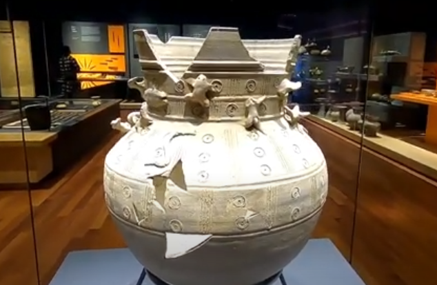 1 전시실에서 반드시 봐야 할 것중 토우를 붙인 항아리가 있다. 사람이나 뱀, 개구리, 오리등 동물을 흙으로 작게 흙으로 빚어 만든 것으로 죽은 망자를 위한 바람이 담긴 그릇을 제작했음을 알수 있다. 개구리는 알을 많이 낳기 때문에 풍요와 다산을 상징한다. 새(오리)는 죽은 자의 영혼을 새를 통해 하늘로 올려보내는 의미, 거북이는 장수를 상징, 뱀은 허물을 벗고 성장하기 때문에 다시 태어나는 부활의 의미가 있 여인이 악기를 연주하는 모습을 통해 신라인들의 삶의 모습을 엿볼 수 있는 유물이다.