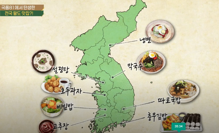 통영에 충무김밥과 더불어 천안 호두과자, 강원도 춘천 막국수, 전주 비빔밥, 순창 고추장, 대구 따로국밥, 함흥 냉면, 서울 설렁탕 등이 소개되어 유명세를 탔다.