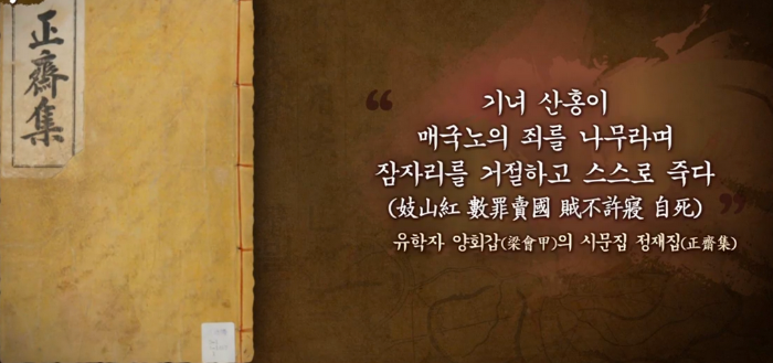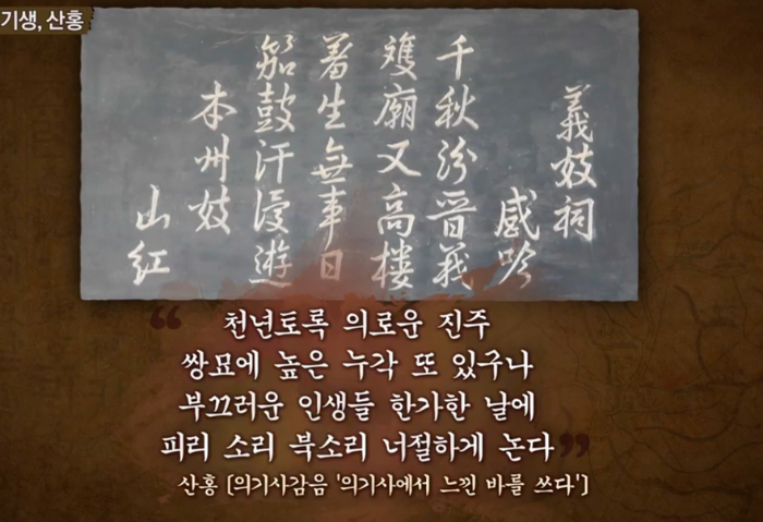 산홍은 논개가 살았던 시대로 300년 후 1900년 초 국권을 잃어가던 암울한 시대에 살았다. 당시 기생들은