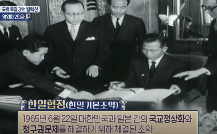 한일회담은 이승만 정권 시기부터 계속되었다. 당시 반일 감정이 컸던 탓에 협상 난항을 겪던 와중 박정희 정권 때 한일협이 극적으로 타결된다. 한일협정 3년전 김종필이 일본 외무장관을 만나 협상하며 큰 역할을 했다.