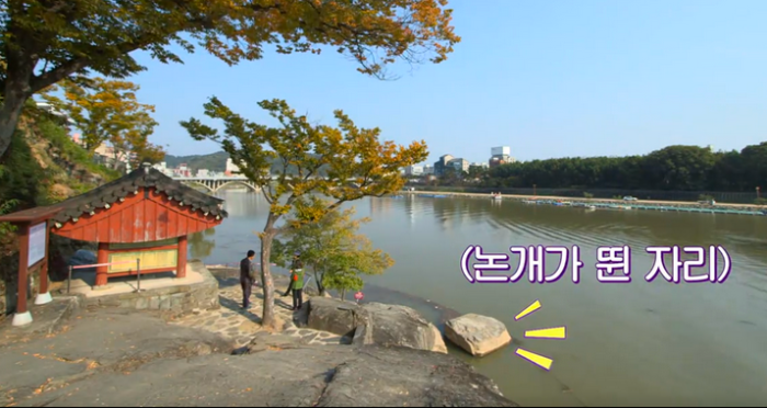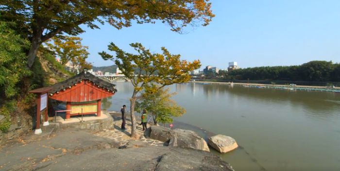 지금은 댐이 건설되어 유속이 많이 느려졌으나 옛날에는 당시 6월에 장마철이라 유심이 깊었을 것으로 추정한다. 진주교 아래를 보면 금장식의 동그란 것이 있다. 이것은 논개가 외장을 품고 물속에 빠져들어갈때 손가락이 풀리지 않게 하기 위해 열 손가락에 가락지를 꼈다는 이야기의 황동가락지 상징이다.