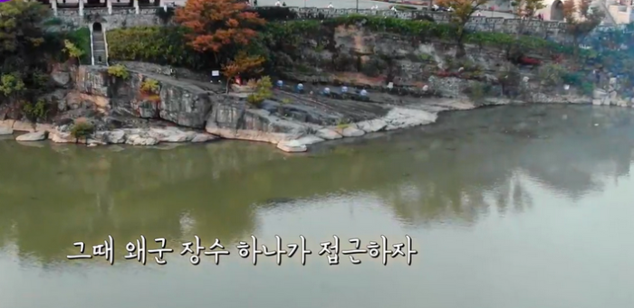 왜군 장수 하나가 접근을 하게 되고 이에 주논개는 그 왜장을 껴안고 강물로 뛰어들었다는 얘기가 있다. 논개가 기생이였는지 기생인 척을 했는지는 모르는 일이다. 그러나 당시 진주 시민들이 논개 이야기를 믿었다는 사실이 중요하다.