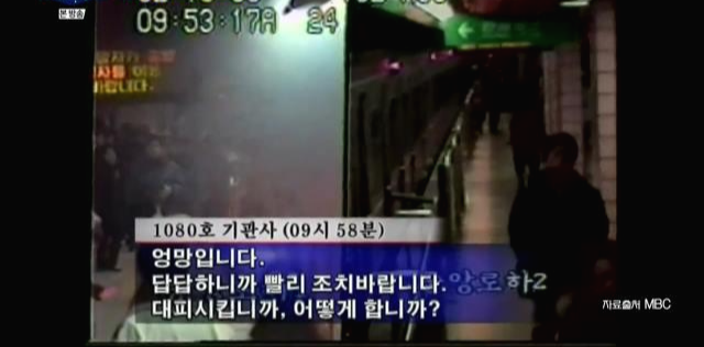 문제는 불이난 중앙로역으로 또 다른 열차가 진입하고 있었다. 열차가 들어가면 안되는 상황임에도 종합상황실에는 조심해서 들어가라고 교신을 했고 이미 불이 붙은 1079호 옆으로 1080호열차가 진입하게 된다. 그리고 결국 불이 옮겨 붙어 열차내 전기가 끊기고 열차를 빼려고 했으나 움직일수 없게 된다.