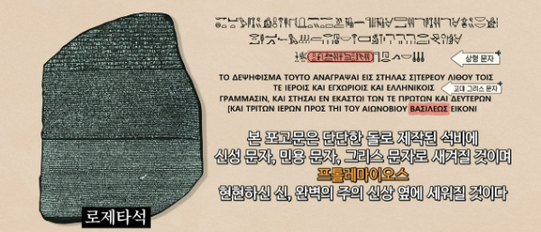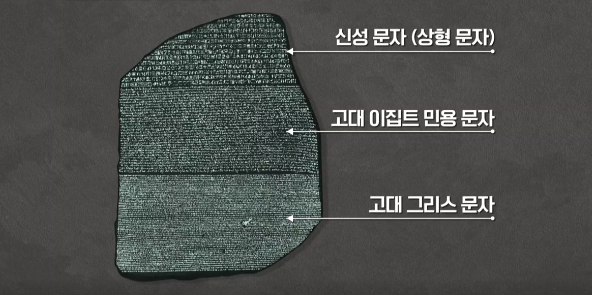 로제타석은 세 가지 서로다른 문자로 적혀있다.