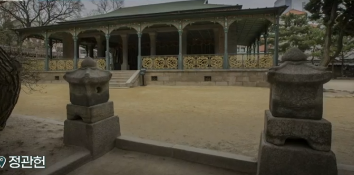 정관헌은 고종 황제가 자주 커피를 마셨다는 건물로 서양식 기둥을 세운 베란다 구조이다. 전통문양 박쥐가 새겨져 있는데 황실의 복을 기원하는 뜻이 담겨있다. 대한제국 시절 양관이라 불리는 러시아 출신 건축가 사바틴이 설계한 것으로 고종의 개인 카페 용도로 사용되었다.