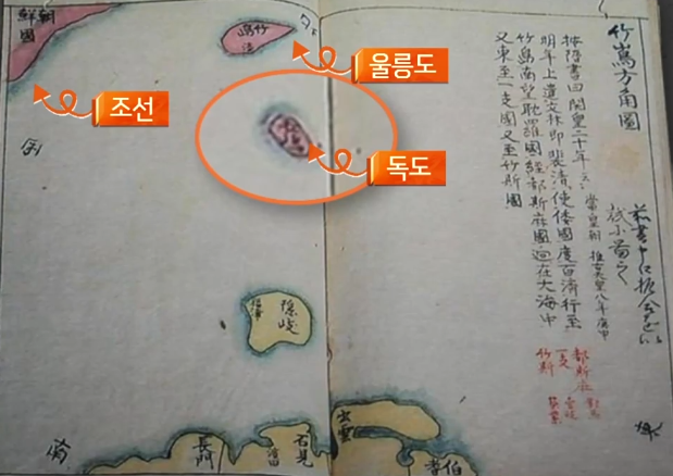 일본 문서에도 분홍색으로 조선과 독도를 같은 색으로 표기한 기록