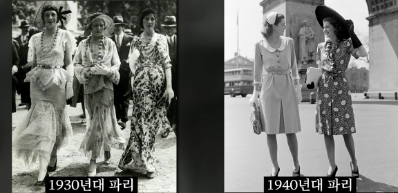 이렇게 물자가 제한되니 사람들의 의상도 달라지기 시작한다. 나무로 만든 신발 밑창을 사용하고 천이 부족해서 치마를 좁고 짧게 만들기 시작한다. 당시 나치 독일군은 낙하산, 밧줄, 그물을 만들기 위해 프랑스 안의 비단, 스타킹까지 가져갔기 때문이다.