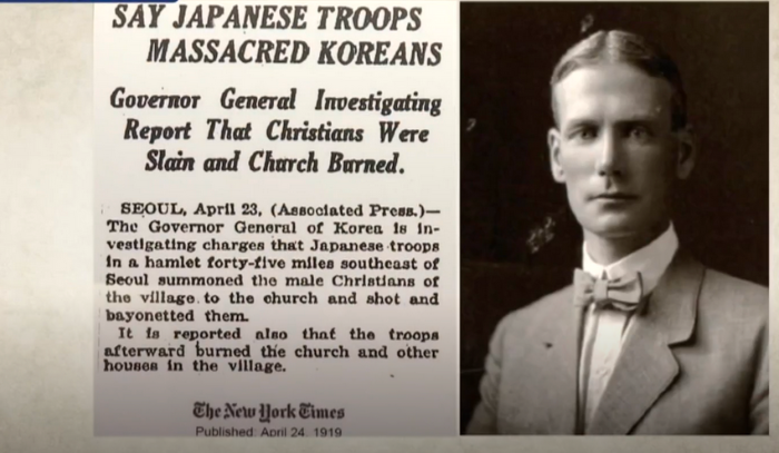 3.1 운동이 오랫동안 길어지기게 되나 일본은 극단적인 보복성 무력 진압을 시도하게 된다. 그 목표가 현 화성시 수원군 제암리 주민들을 교회로 불러 모은 후 잠근 후 총살 한다. 이 사건을 기사화한 두 사람이 있다. 삼험한 일제의 눈을 피해 학살 현상을 직접 방문하여 취재를 했다.