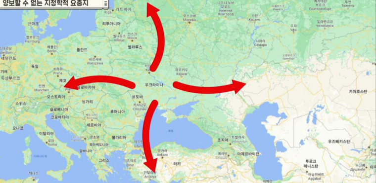 그러나 우크라이나의 장점이자 단점은 지정학적 위치를 뽑을 수 있는데 북서쪽으로는 유럽, 동쪽은 러시아, 남쪽으로는 중동과 만나는 곳으로 지리적 요충지에 속한다.