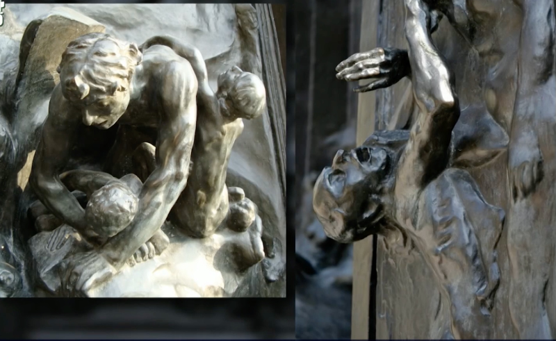 현대 조각의 아버지 거장 로댕이 자신의 인생을 다 바쳐서 만든 최고의 걸작이 바로 <지옥의 문>이다. 지옥의 문은 7M정도 되는 거대한 문으로 1880년 프랑스 정부가 실제로 장식미술관의 중앙문 정문으로 만들려고 제작을 의뢰했다. 로댕은 피렌체 산 조반니 세례당의 <천국의 문>에 감명받아 지옥을 주제로 제작하게 되었다.