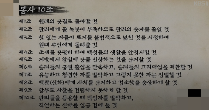 최충헌이 권력을 유지할 수 있던 비결은 기존 무신들과 달리 개혁안을 제시했다. 그러나 비젼을 제시했을 뿐 자신은 권력 유지를 위해 계속 이전 권력자들과 비슷한 짓을 했다. 봉사 10조 최충헌의 개혁안은 유명무실했다.