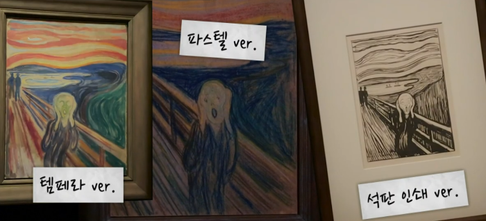 뭉크의 절규 3가지 버전을 정해진 시간마다 돌아가며 공개하고 있기 때문에 시간 확인은 필수이다.