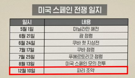 모든 전쟁에서 승리한 미국은 1898년 12월 10일 파리 조약을 체결하며 스페인과의 전쟁을 공식적으로 종결한다. 이 조약에 따라 미국은 괌, 쿠바, 푸에르토리코를 미국의 보호령으로 할량을 받게 된다. 필리핀은 미국이 스페인에게 2천만달러를 주고 매입하게 된다. 하와이 또한 미국 스페인 전쟁 중 하와이 공화국을 미국의 땅으로 병합하면서 필리핀, 아시아로 가는 다리 역할을 하게 된다.