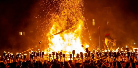 스코틀랜드에서는 바이킹 선조들을 기념하는 축제 유럽 최대의 불꽃 축제 업헬리아 축제로 바이킹의 후예들이 벌이는 전통 불꽃 축제이다. 바이킹 분장을 한 사람들의 횃불 행렬과 바이킹의 모조 롱십(바이킹 배) 를 불태우는 것이 특징이다.