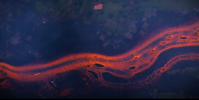 하와이 마우나로아 화산, 킬라우에아산 화산은 세계에서 가장 활발한 활화산이다. 하와이 화산은 현무암 마그마이다.