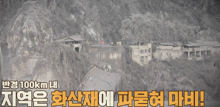 화산재는 치울수 없는 개념이다. 그냥 사라진후 그 위에 새로 재건하는 방식이 되는 것이다.