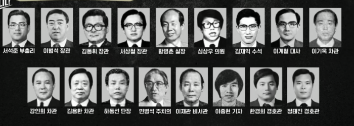 1983년 10월 8일 전두환 대통령은 동남아 순방 일정을 위해 미얀마를 찾았다. 다음날인 10월 9일 미얀마의 독립 영웅 '아웅 산' 참배를 위해 국립 묘지를 방문했는데 굉음과 함께 대규모 폭발이 일어났다. 테러가 발생한 것이다. 테러의 타깃은 대한민국 대통령 전두환이었다. 전 세계를 충격에 빠뜨린 사상 초유의 폭탄 테러 사건이었다. 이 사건으로 미얀마인 포함 사망자 총 21명, 부상자 총 46명이 발생했고 대한민국 행정부 내각 절반 이상이 사망했다.