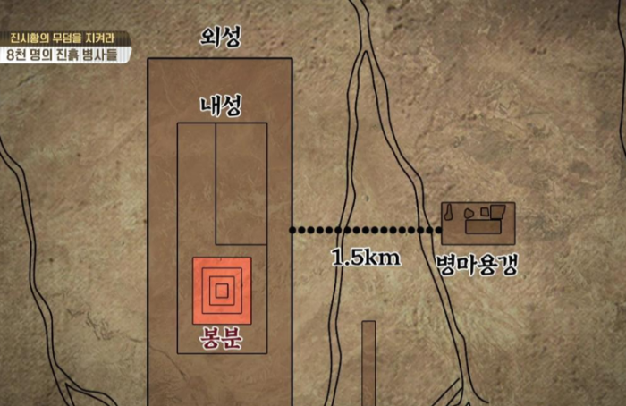진시황은 사후세계에서도 암살을 대비해 무덤 인근에 자신을 지키는 병마들을 배치해 놓은 것이다. 전문가들은 완전 발굴까지는 약 백 년이 걸릴 것으로 추정하고 있다. 진시황은 생전엔 불로초를 죽어선 거대한 무덤으로 영생을 꿈꾸었다.