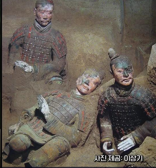 병마용은 발굴 당시 색이 살아있었다. 그러나 발굴되는 과정에서 색깔이 빠르게 없어진다. 오랜 세 월 묻혀있다가 공기에 노출되자 바로 산화되어 신기루처럼 색이 사라져 버린 것이다.