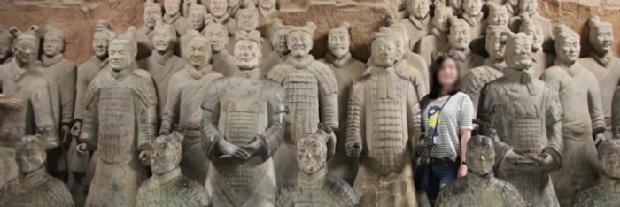 진시황릉에는 중국을 최초로 통일한 황제 진시황의 무덤을 지키는 8000명의 진흙 군사 친위군단과 130개의 전차, 520점의 말이 있다. 토용은 중국 역사상 최초의 실제 사람 크기로 저마다 생김새가 모두 다르다. 흙으로 형상을 빚어 구워 만든 모형으로 테라코타라고 부른다.
