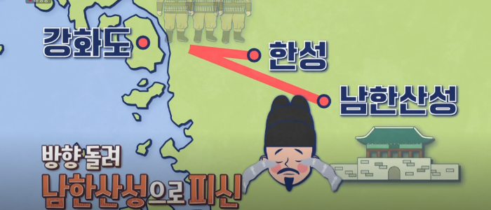 청나라 군대가 너무 빨리 옷 탓에 인조가 강화도로 가려고 했으나 청나라 군대가 이미 가는 길목을 막고 있었기 때문에 남한 산성으로 피신할수 밖에 없었다. 미개한 오랑캐에게 전술이 노출될 거라는 생각 자체를 하지 않았기 때문에 플랜 B 조차도 만들지 않았던 것이다.
