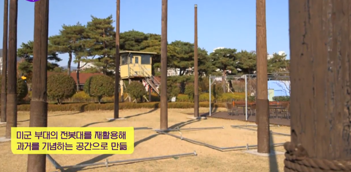 미군 부대의 전봇대를 재활용해 과거를 기념하는 공간으로 만들어 놨다. 당시의 나무 전봇대들을 한데 모아서 신비한 느낌을 주는 아트물로 만들었다.