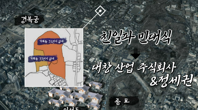 그러나 집을 지어도 조선인들은 집을 살 만큼 경제적 여유가 없었다. 이에 중류 이하의 계층을 구제하기 위해 집값을 할부로 판매한다. 그러던 어느 날 북촌의 중심가 종로구 가회동 33번지에 1535평의 또 다른 땅이 나왔다는 소식을 듣게 된다. 그런데 그 옆 33번지보다 더 큰 땅이 매물로 나왔다는 소식을 듣게 된다. 이 땅은 친일파 민대식의 땅이였고 이 두 부지를 합쳐서 7100여 평의 땅 축구장 3개 크기의 땅을 매입한다.