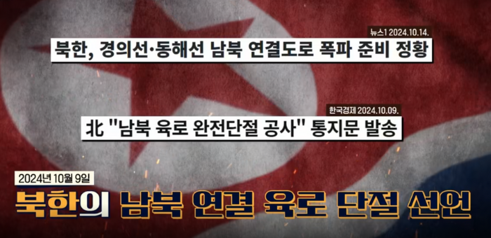 북한은 2024년 10월 9일, 대한민국과 연결된 자국 내 도로와 철도를 완전히 끊고, 견고한 방어 축성물로 요새화하는 공사를 진행하겠다고 선언하였다. 이러한 선언 이후, 북한은 경의선과 동해선 도로의 폭파 준비 작업을 진행하였으며, 이는 남북 간의 물리적 단절을 공식화하려는 의도로 해석된다.