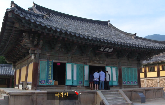 극락전 편액 뒤에 돼지가 한마리 있다. 보통 사찰의 공포에는 주작이나 용의 형상으로 장식을 하는 극락전에 돼지를 놓은 이유는 일반 절에 뱀이 많아 뱀이 가장 싫어하는 돼지를 만들어 둔다. 또 하나는 극락전은 천국과 연관되어 있고 천국에 가는 것이 복을 받는 것이라고 생각하기 때문에 일반인들이 복과 관련된 동물이 돼지이므로 돼지를 놓았을 것이라는 설이다.