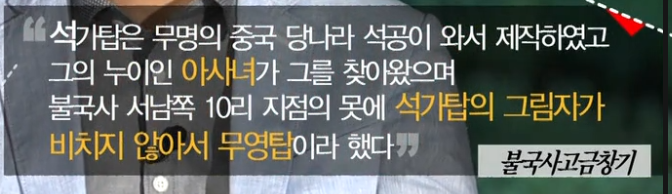 무영탑에 대한 아사달, 아사녀 설화가 전해지는데 이 이야기는 역사적 기록에는 전해지지 않고 1938~39년까지 동아일보에 연재된 현진건의 소설에서 아사달, 아사녀에 대한 무영탑에 대한 이야기가 거의 역사적 사실처럼 되어버린 것이다.