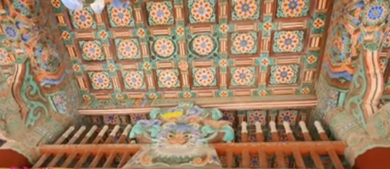 자하문은 연화교, 칠보교를 가는 문인데 자하문 천장에는 자연과의 조화로움을 강조한 구조물들이 보인다. 들보가 안쪽으로 휘어있는 것과 바깥쪽으로 휘어있는 것 , 문 끝쪽에 해와 달을 상징하는 둥근 원판이 있는데 들보가 내려간 쪽의 원판은 달이고 들보가 올라간 쪽의 원판은 해라고 한다. 해와 달 음양, 우주의 조화를 표현한 것이다.
