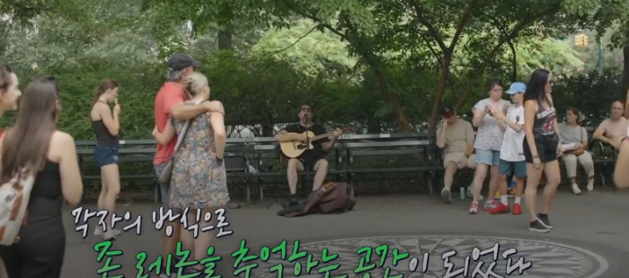 센트럴 파크 스트로베리 필즈에 가면 구석구석 존 레논의 흔적으로 가득하다. 전 세계의 팬들이 모여 각자의 방식으로 존 레논을 추억하는 공간이 되었다. 이곳은 일년 내내 버스킹하는 곳이다. 또한 존 레논 관련 굿즈로 가득한 곳이다.