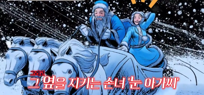 러시아의 산타 할아버지는 눈과 얼음을 다스리는 눈 할아버지 '제드마로스' 라는 인물이다. 빨간 옷이 아닌 푸른 옷을 입고 있고 모든 것이 닿으면 얼음으로 변하는 지팡이를 들고 백마가 끄는 썰매를 타고 선물을 나눠준다고 한다. 그리고 그 옆에는 눈 할아버지 손녀 눈 아가씨가 쫓아다닌다고 한다.