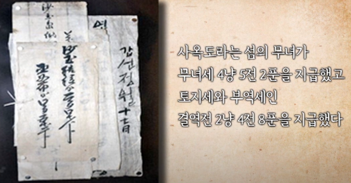 무녀에게 무업세를 징수했던 영수증