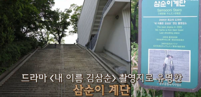 조선신궁 계단의 일부분이 드라마 촬영지 삼순이 계단으로 유명한 장소