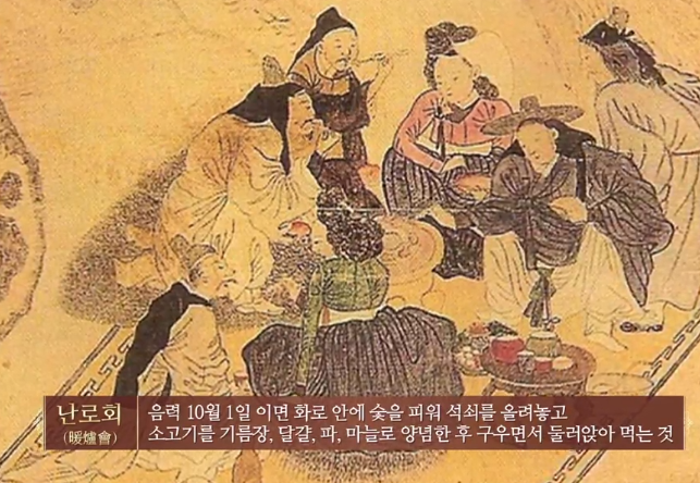조선 시대 풍속화 야연 원래 난로회는 중국 풍습이다. 음력 10월의 첫날 고기를 구워먹었던 중국인들인데 이들은 유학생으로 추정