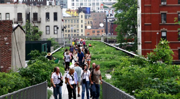 선형 공원의 대명사로 뉴욕의 하이라인이 있다. 흉물이 된 철길을 공원으로 리모델링하며 연간 800만명이 찾는 뉴욕의 관광명소로 자리매김하고 있다. 뉴욕이 발전한 이유중의 하나는 배를 대기 쉬운 장소 화물 수송을 위한 각종 운송 수단이 즐비했다. 마차, 자동차, 기차등이 섞여 난장판이 되니 위험했고 결국 지상 9m 에 상업용 철도를 조성했다.