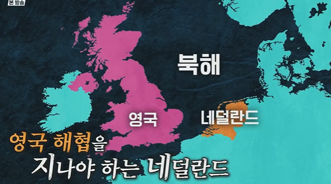아래 지도에서 영국은 유럽 대륙과 북해 사이에 위치해 있어서 네덜란드가 밖으로 나가려면 Engliand 주변의 바다를 통과해야했고 이 지리적 위치를 이용함으로써 영국은 네덜란드 상인 선박과 함대에 관세를 매겨 무역 경로를 방해 할 수있었다.