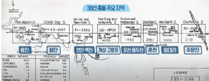 한국전쟁이 일어나기 1년전부터 38선 근처에서는 크고 작은 전쟁이 계속적으로 일어나고 있었다. 19491월 ~10월 38선 충돌 통계를 보면 북한군 출연 횟수는 563회, 북한군 병력은 70,625명, 한국군 병력은 46,073명이었다. 또한 사망자는 4천명이 넘었고 한국군도 320명, 부상 800 , 민간인 사상자도 200명 가까이 되었다.