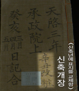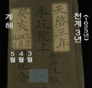 승정원 일기 표지 중앙에는 기록 주체인 승정원 이름이 적혀있고 양 옆으로는 해당 기록의 년도를 표시했고 표지가 낡아 바꾼 경우도 빠짐없이 기록했다. 조선왕조 실록은 4부를 만들었으나 일일이 손으로 적은 필사본 1부만 남은 승정원 일기이다.