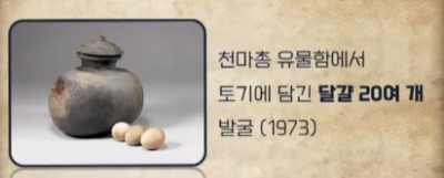 삼국의 국가 모두 건국시조가 알에서 태어났고 신라의 별칭에는 계림이라고 있다. 계림은 '닭의 나라'라는 의미인데 닭은 아침을 처음 여는 동물로 고대사에서는 매일 하나씩 알을 낳는 신성한 동물로 인식된다. 농경 사회에선 알은 풍요의 상징이다. 그래서 신라 사람들은 닭을 신성시 여겼다. 그래서 신라 고분에서도 달걀이 발견되었다.