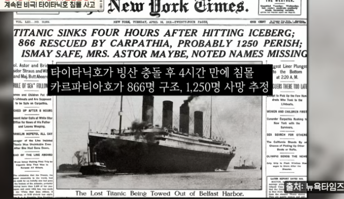 뉴욕타임즈에 실린 타이타닉 침몰사고